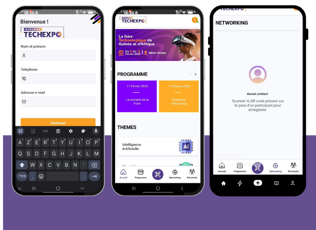 cette application mobile est conçu pour avoir accès aux programmes et faire du réseautage entre les startups, investisseurs et visiteurs