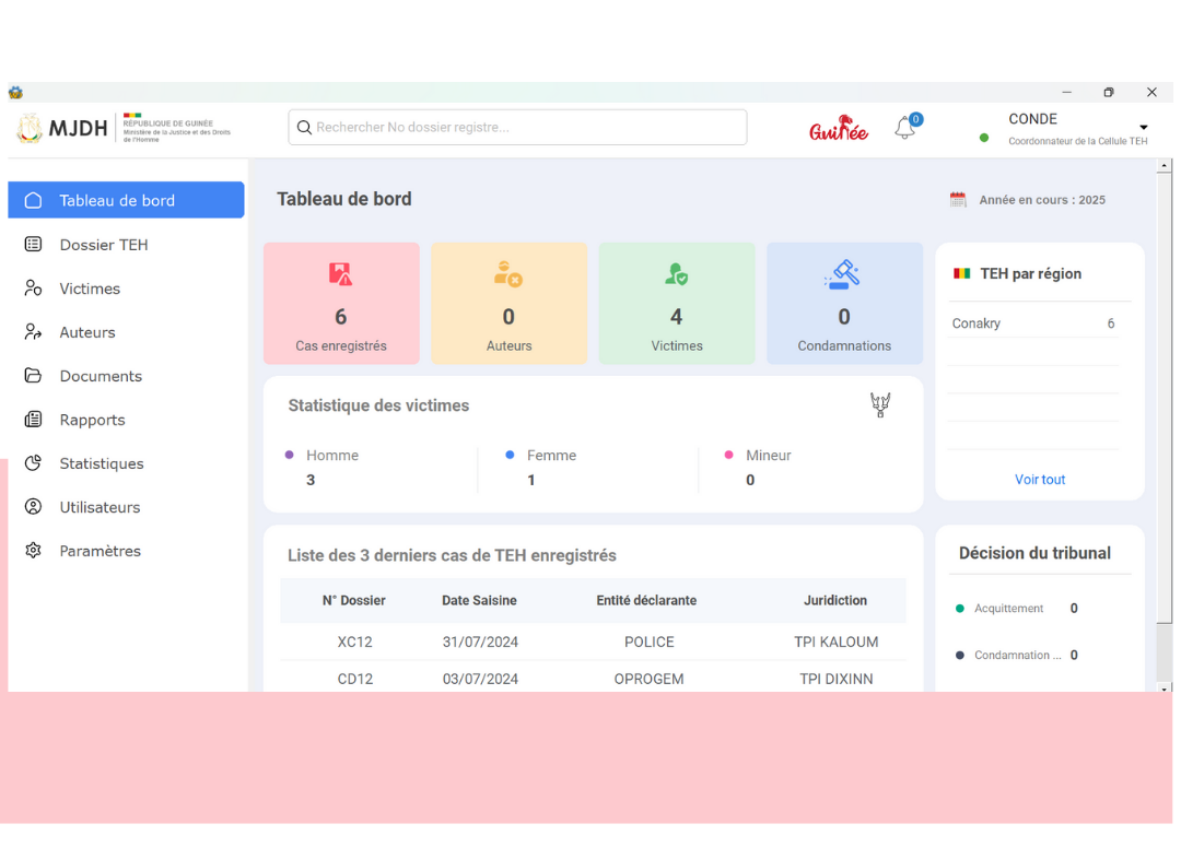 Progiciel de gestion de la chaine pénale en République de Guinée sur les question de traite des personnes et pratiques assimilées